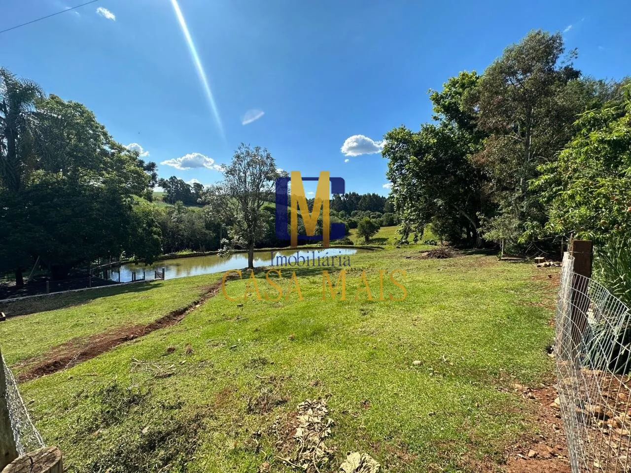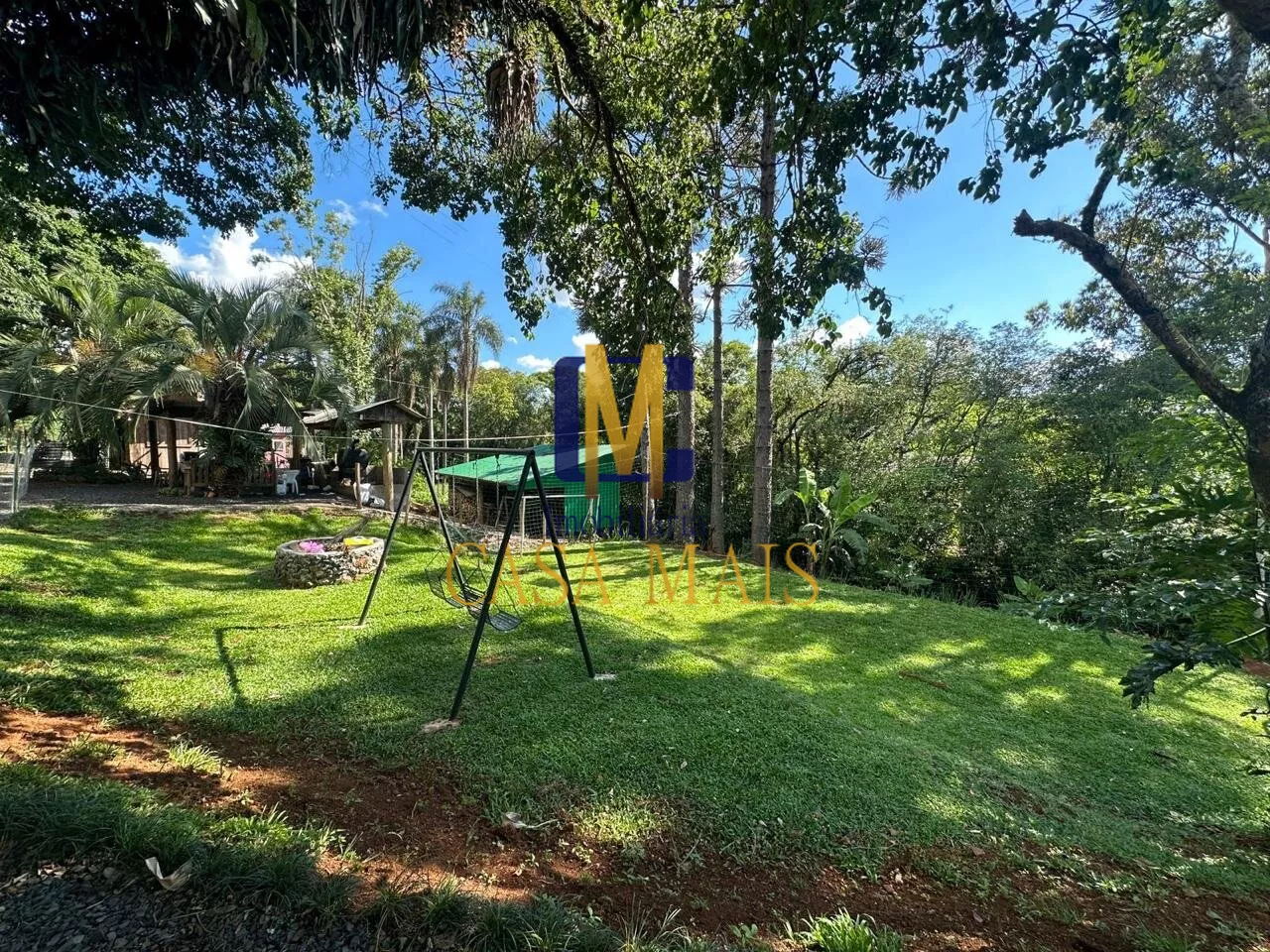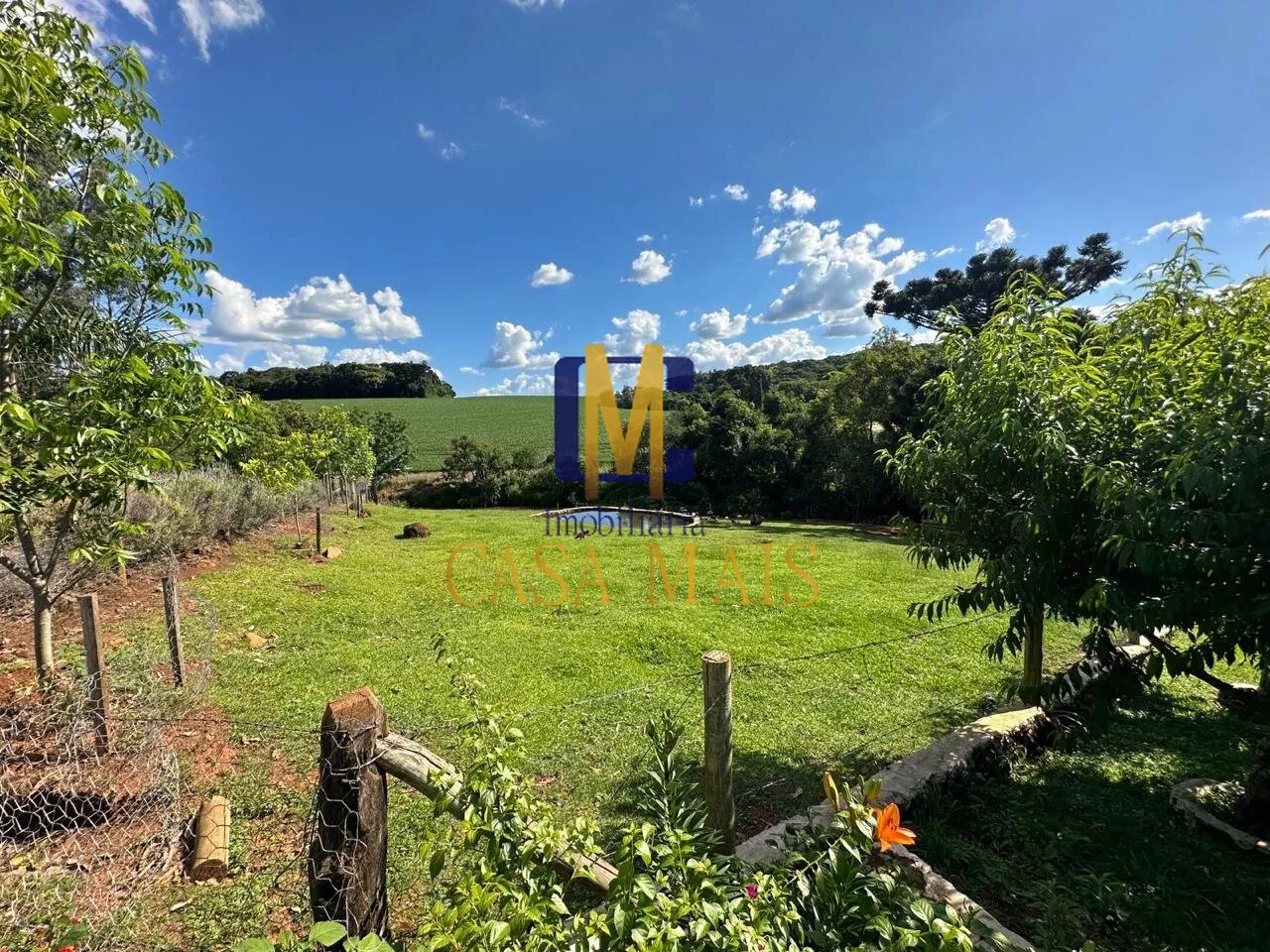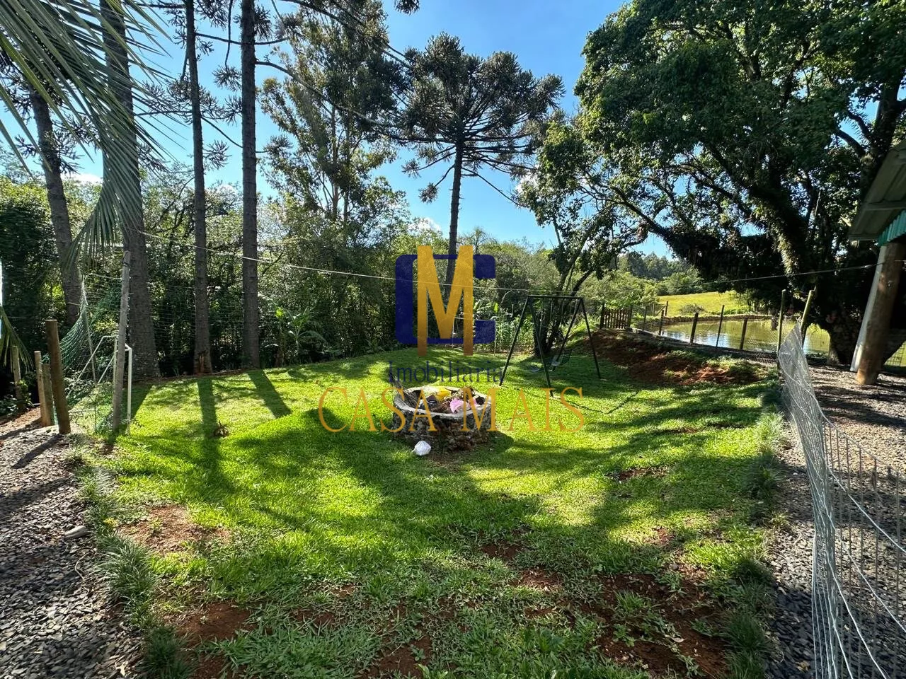 Toda cercada, 02 Açudes, pomar de frutas, chiqueiro, paiol, depósito, Edícula campeira (rústica), piscina, Arborizada amplo espaço jardim, playground com Balanço;